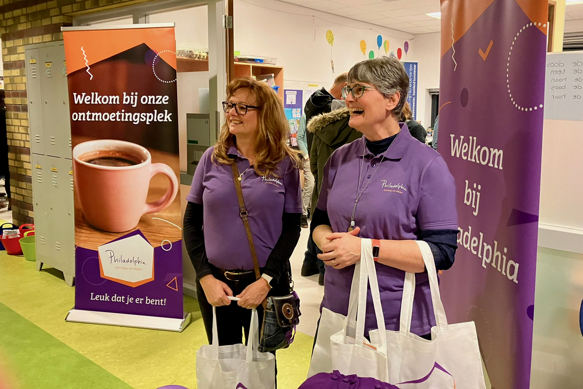 Philadelphia was er met een klaslokaal vol met marktkramen met informatie over begeleid wonen en werken. Een team van medewerkers van Philadelphia stond de bezoekers te woord. Je ziet ze allemaal op de foto hierboven. Aan belangstelling geen gebrek voor onze locaties De Witte Olifant voor dagbesteding en Oslostraat, Borneo en ‘t Homerushuis voor begeleid wonen!